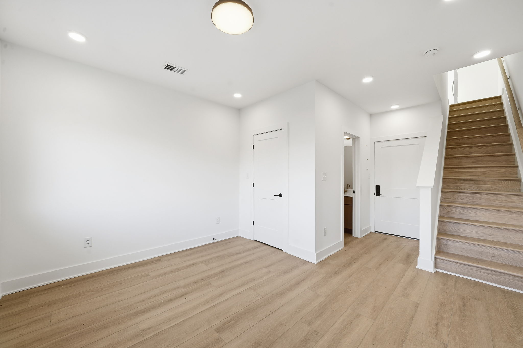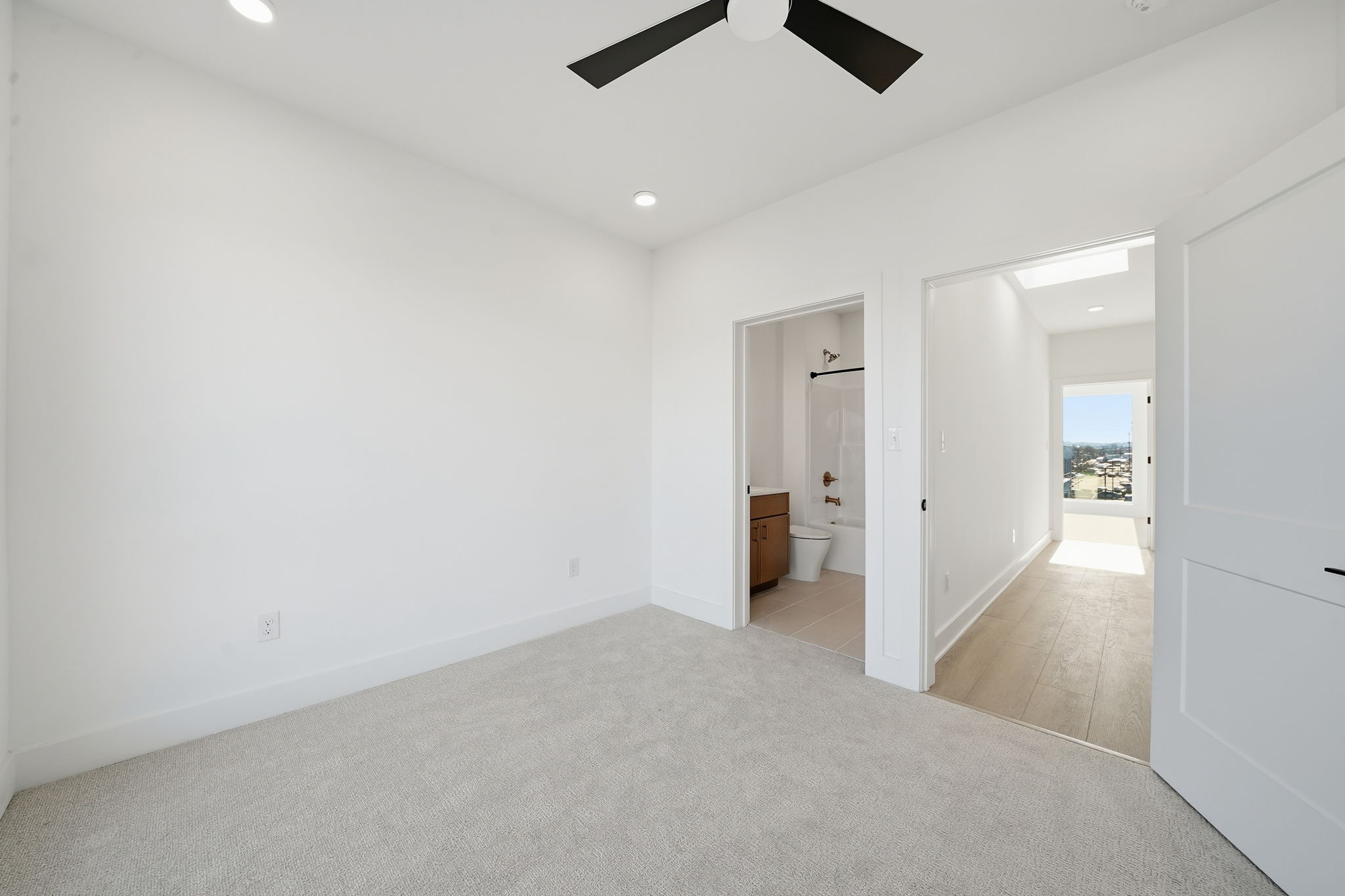 The primary bedroom features an ensuite bath with quartz counters and tastefully designed tile shower. A secondary bedroom with ensuite bath as well as the laundry complete this home. The exteriors feature a striking combination of pristine white stucco, warm wood-effect cladding, and industrial-inspired metal accents, creating a bold yet welcoming aesthetic. This unique blend of materials offers a sophisticated, urban look that stands out while seamlessly integrating with its surroundings.