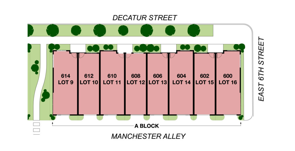600 Decatur Street – SOLD 602 Decatur Street – Model 604 Decatur Street – SOLD 606 Decatur Street – AVAILABLE 608 Decatur Street – SOLD 610 Decatur Street – SOLD 612 Decatur Street – SOLD 614 Decatur Street – SOLD