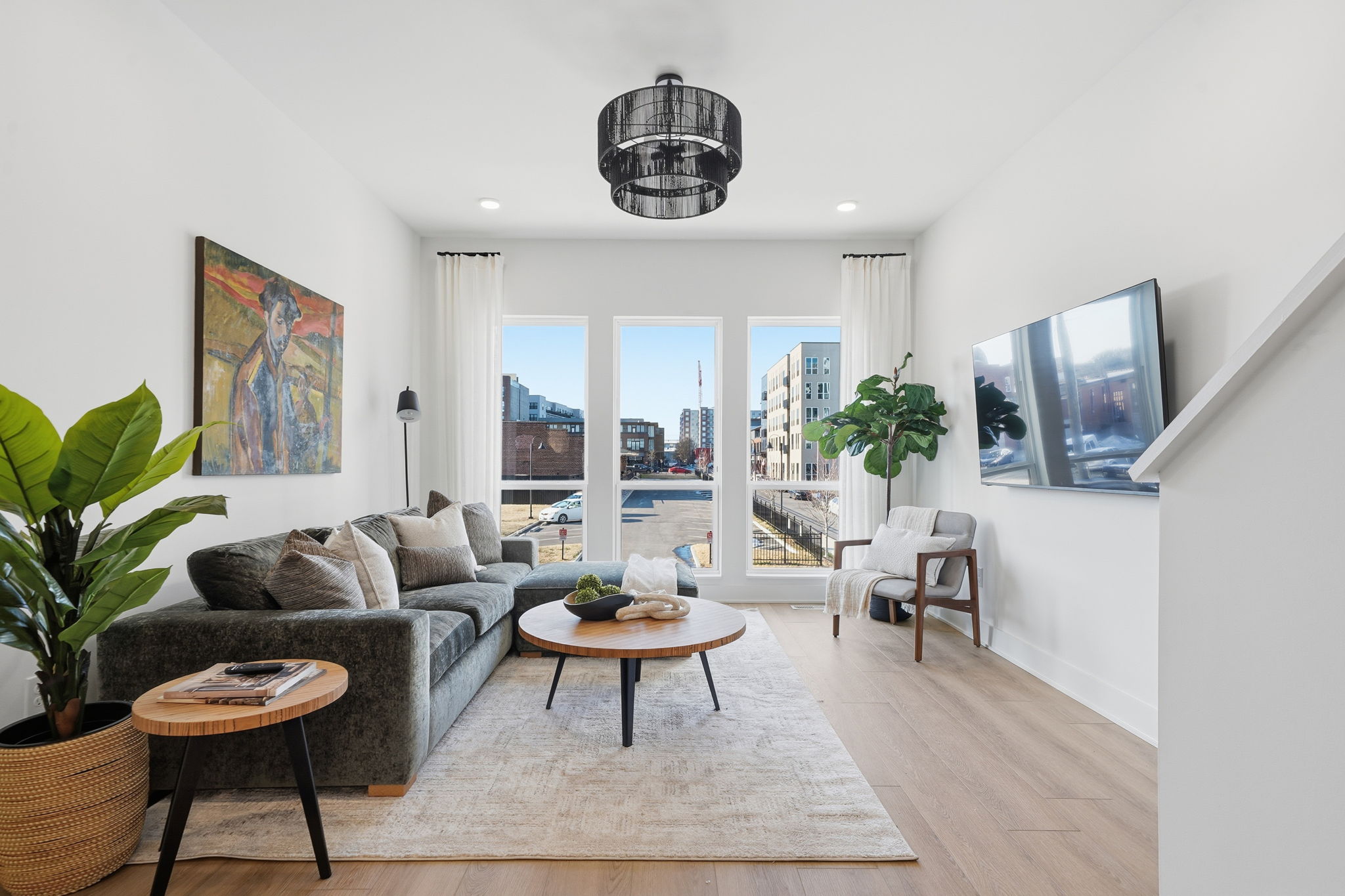 Step into modern luxury in Manchester Square’s stunning townhomes, where sleek design meets lasting craftsmanship. Each home’s exterior features a striking combination of pristine white stucco, warm wood-effect cladding, and industrial-inspired metal accents, creating a bold yet welcoming aesthetic. This unique blend of materials offers a sophisticated, urban look that stands out while seamlessly integrating with its surroundings.