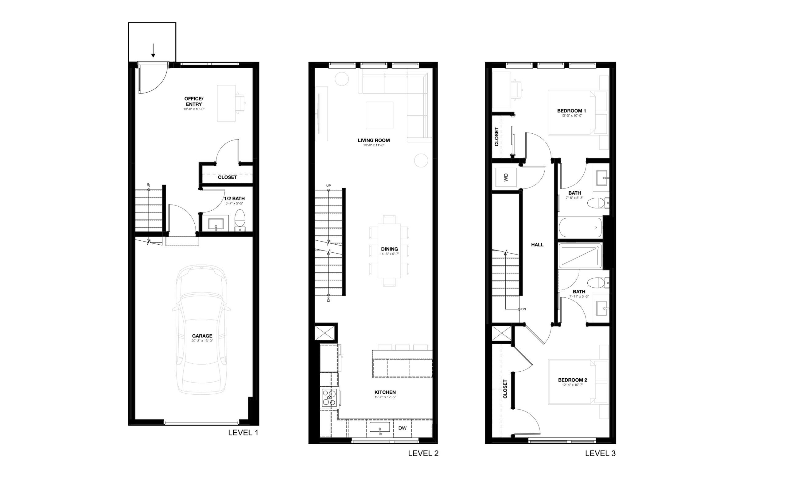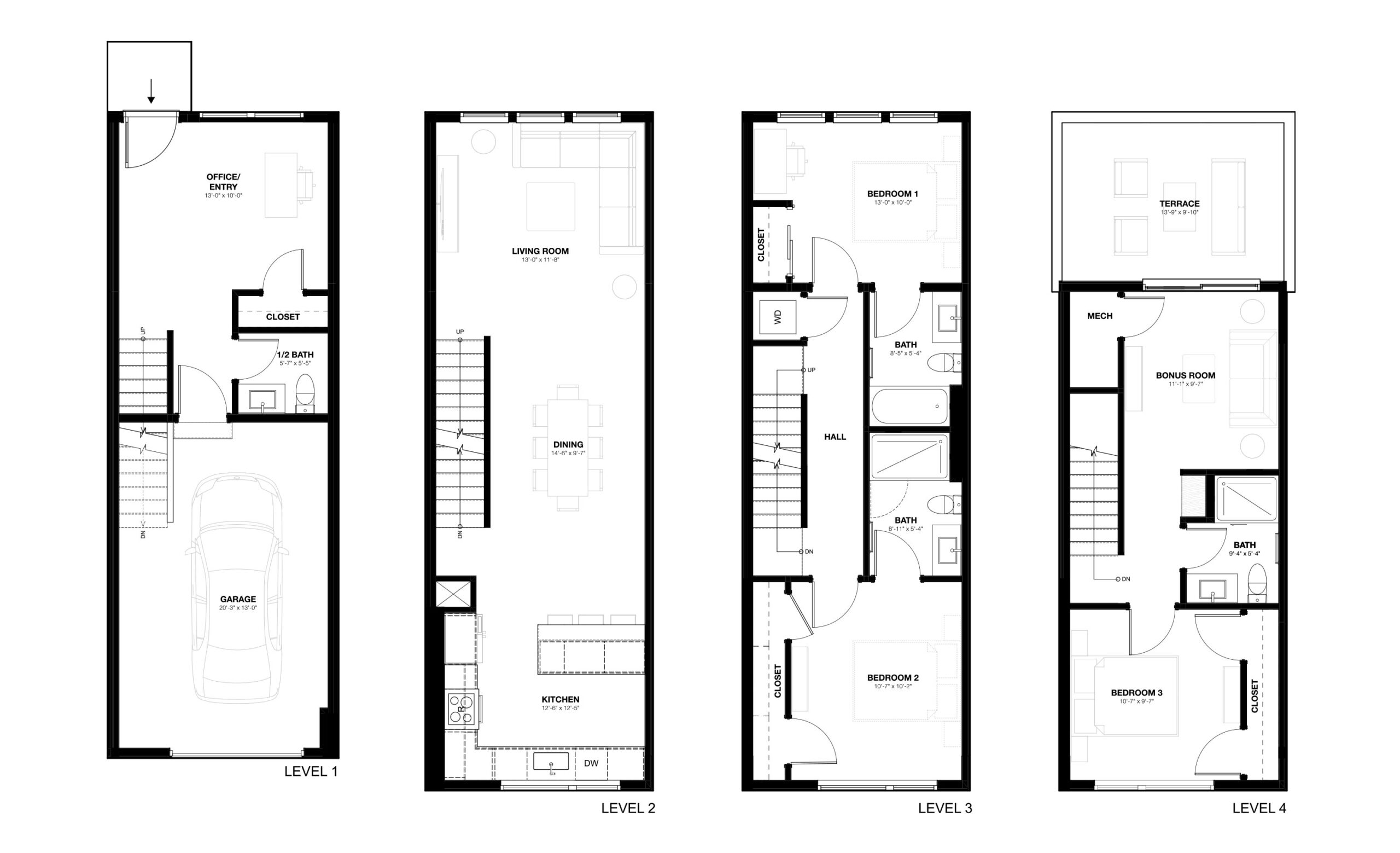 Step inside the Pipeline where the interior blends style and function. Starting with 2 bedrooms and a flex room for you to make your own, this floorplan can be upgraded to a fourth floor featuring a 3rd bedroom and bonus room. The modern kitchen features unique slim-shaker cabinetry, full-height quartz backsplashes, and quartz counters.