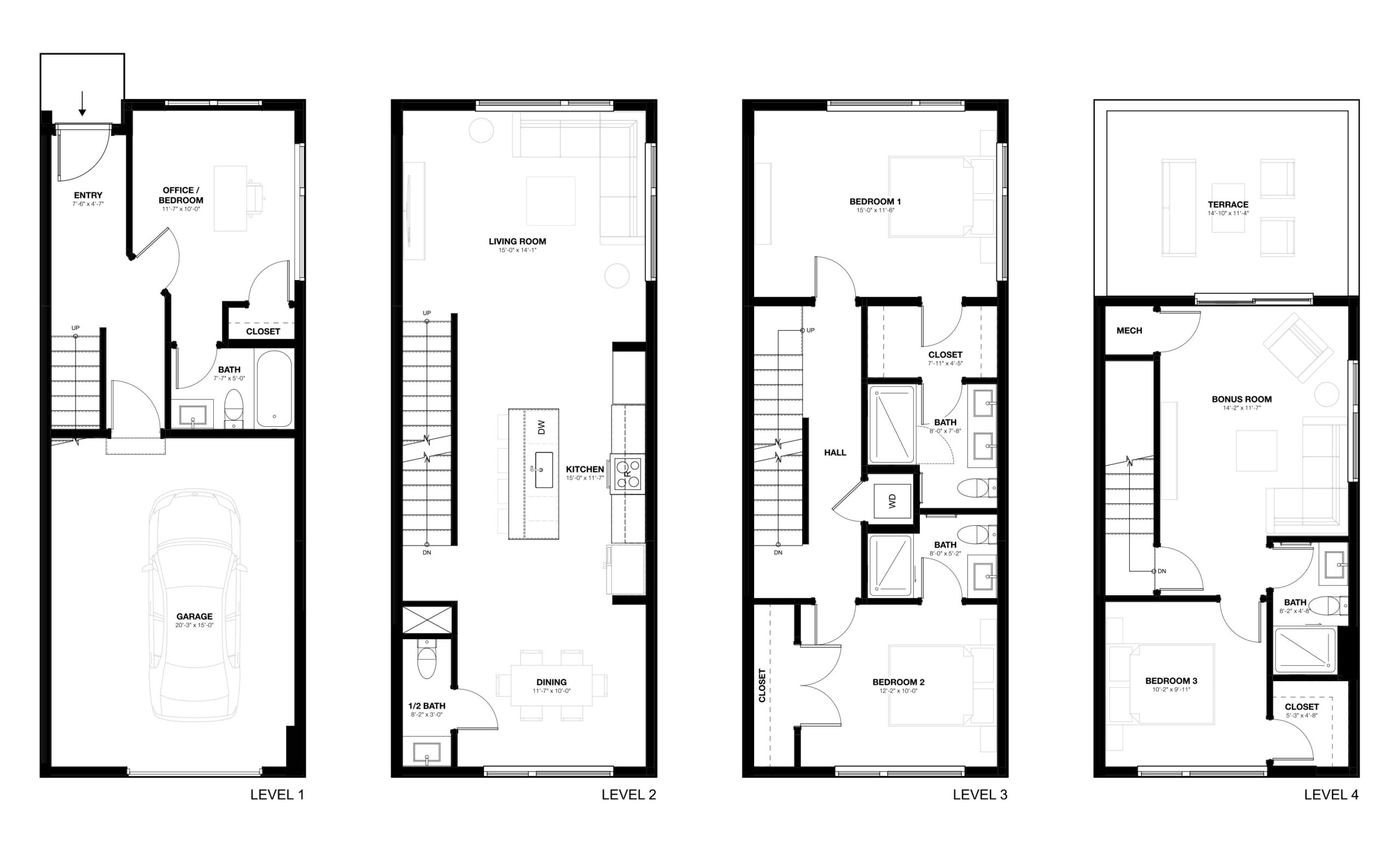 Starting in low $400,000s Spacious 3–4 bedroom townhomes for sale in Richmond, VA with modern kitchen, attached 1-car garage, and optional rooftop terrace.